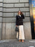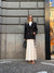 Le linee strutturate e i dettagli sartoriali – come i bottoni doppiopetto e il colletto ampio – conferiscono un’eleganza discreta e contemporanea.