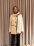 Le linee strutturate e i dettagli sartoriali – come i bottoni doppiopetto e il colletto ampio – conferiscono un’eleganza discreta e contemporanea.