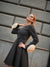 • Eleganza e raffinatezza si incontrano in questo abito nero  impreziosito da delicate rose applicate sulla manica che donano un tocco romantico e femminile. Realizzato in un tessuto morbido e confortevole, questo capo valorizza la silhouette con una linea fluida e sofisticata.