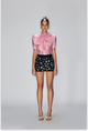 La modella indossa la taglia 26 ed è alta 178 cm.